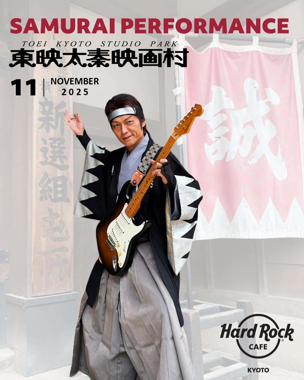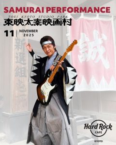 東映太秦映画村の侍がギターを持って、